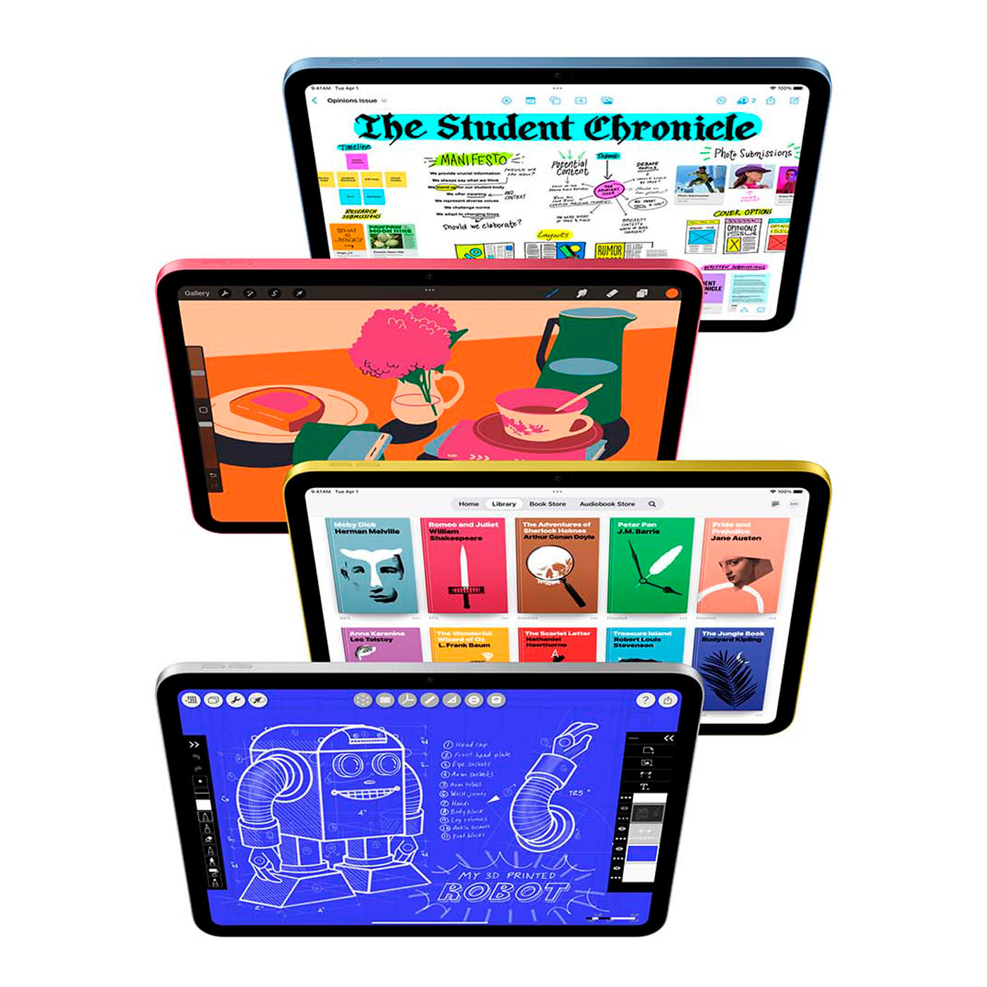 Det 12 MP bagkamera med Smart HDR 4 og mulighed for 4K‑video gør det let at dokumentere arbejdsopgaver i høj kvalitet eller optage klip til kunder. Det 12 MP frontkamera med Center Stage holder dig automatisk i centrum under videomøder, selv når du bevæger dig rundt. Batteriet rækker op til cirka 10 timer, så du kan klare en hel arbejdsdag uden at bekymre dig om opladning, og USB‑C giver dig mulighed for hurtig opladning, når dagen kræver det.