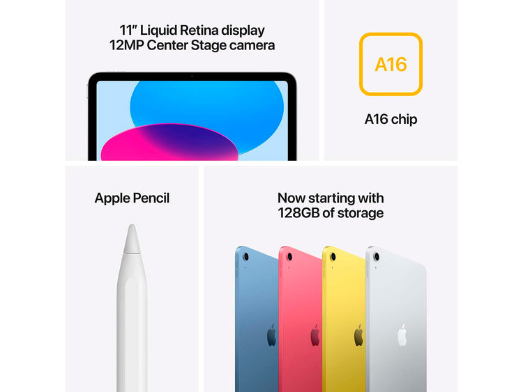 A16 Bionic‑chippen, 6 GB RAM og en 16‑core Neural Engine giver en hurtig og flydende oplevelse, uanset om du jonglerer mails, regneark, tunge webapps eller videokald. Du kan vælge mellem 128, 256 eller 512 GB, alt efter hvor meget du har brug for at gemme lokalt. På Cellular‑modellen får du hastigheden fra både Wi‑Fi 6 og 5G, så du kan arbejde effektivt, også når du er væk fra kontoret. Touch ID åbner enheden hurtigt og sikkert, hvilket er praktisk, når du er på farten.
